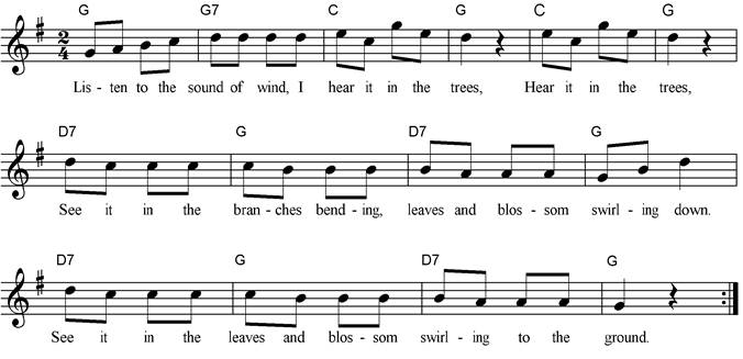 move them downwards as they sing. This could be sung as a round. By Winifred E.