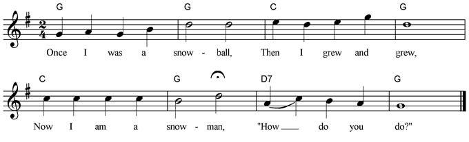 Once I was a snowball, Then I grew and grew, Now I am a snowman, “How do you do?” |