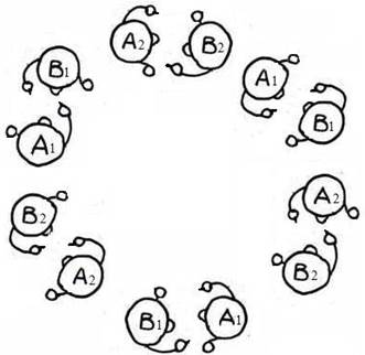one inside the other, with partners facing each other. Continue this game by