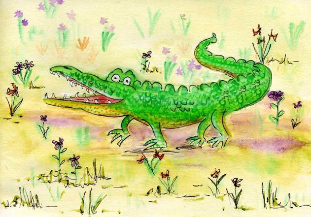 In this song with its steady marching beat, crocodile goes off to war leaving