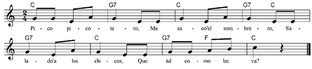 sombrero for this meeting and greeting song. ‘Pico picotero’