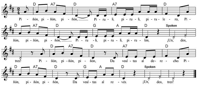 piñón O A song from the Galicia region of Spain. ‘Peanuts’ are used in translation rather than ‘piñón‘ or pine nuts for familiarity. This song is similar to ‘Miguel,