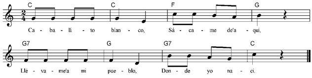 horse’ has the same tune as ‘Los pollitos dicen’ another nursery favourite. Listen at: http://www.youtube.com/watch?v=owwWIEosUt8&feature=related Gallop freely in and out of each