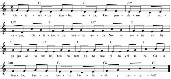 also a dance performed in Andalusia and Cuba. The word ‘Gatatumba’ is probably onomatopoeic although in the