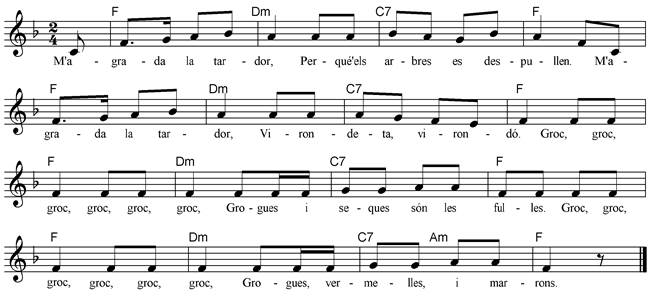 M'agrada la tardor O A song of autumn colours. ‘Groc’ translates as yellow but is substituted