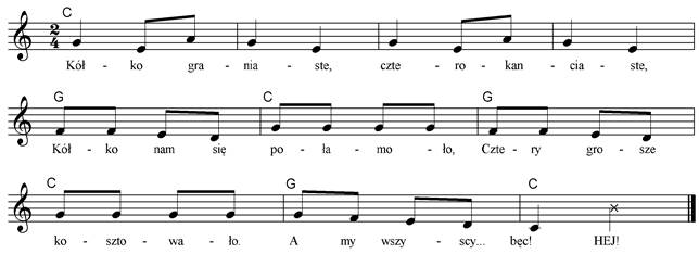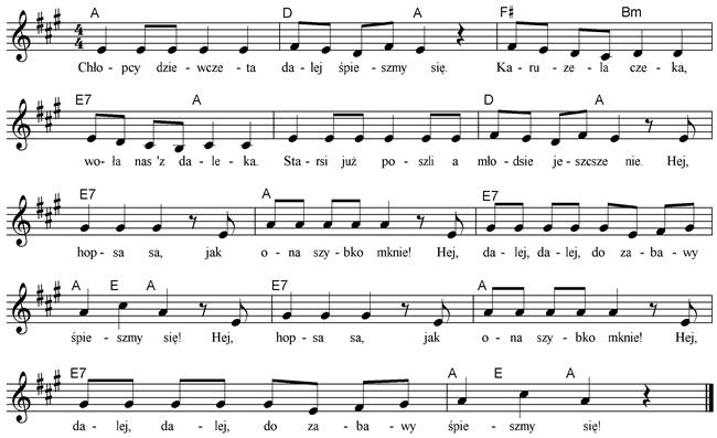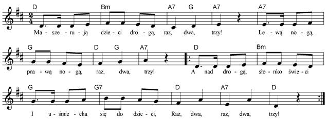 drogą O Popular in the scouting movement, ‘Maszerują dzieci drogą’ or the ‘Children’s road march’, is a rousing tune well suited to striding along country lanes. Watch at: http://www.youtube.com/watch?v=LWxZBGHf-gE Children set off in pairs, side by side facing clockwise round in a