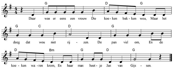 rijzen. De pan viel om, En de koeken waren krom, En haar man heette